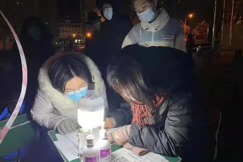 有的无畏天寒地冻,在刺骨寒风中持续工作至凌晨圆满完成核酸检测通知工作;