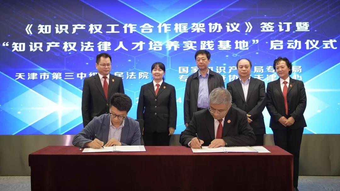 4月23日,为迎接第19个世界知识产权日,国家知识产权局专利局专利审查协作天津中心(以下简称专利审查天津中心)与天津市第三中级人民法院中院(以下简称三中院)签署《知识产权工作合作框架协议》,并举行“知识产权法律人才培养实践基地”揭牌仪式。天津市高院副院长钱海玲、市知识产权局副局长陈继江、三中院院长郝树龙、副院长吴立群出席仪式,中心主任魏保志、副主任杨帆、中心相关职能部门负责人参加。